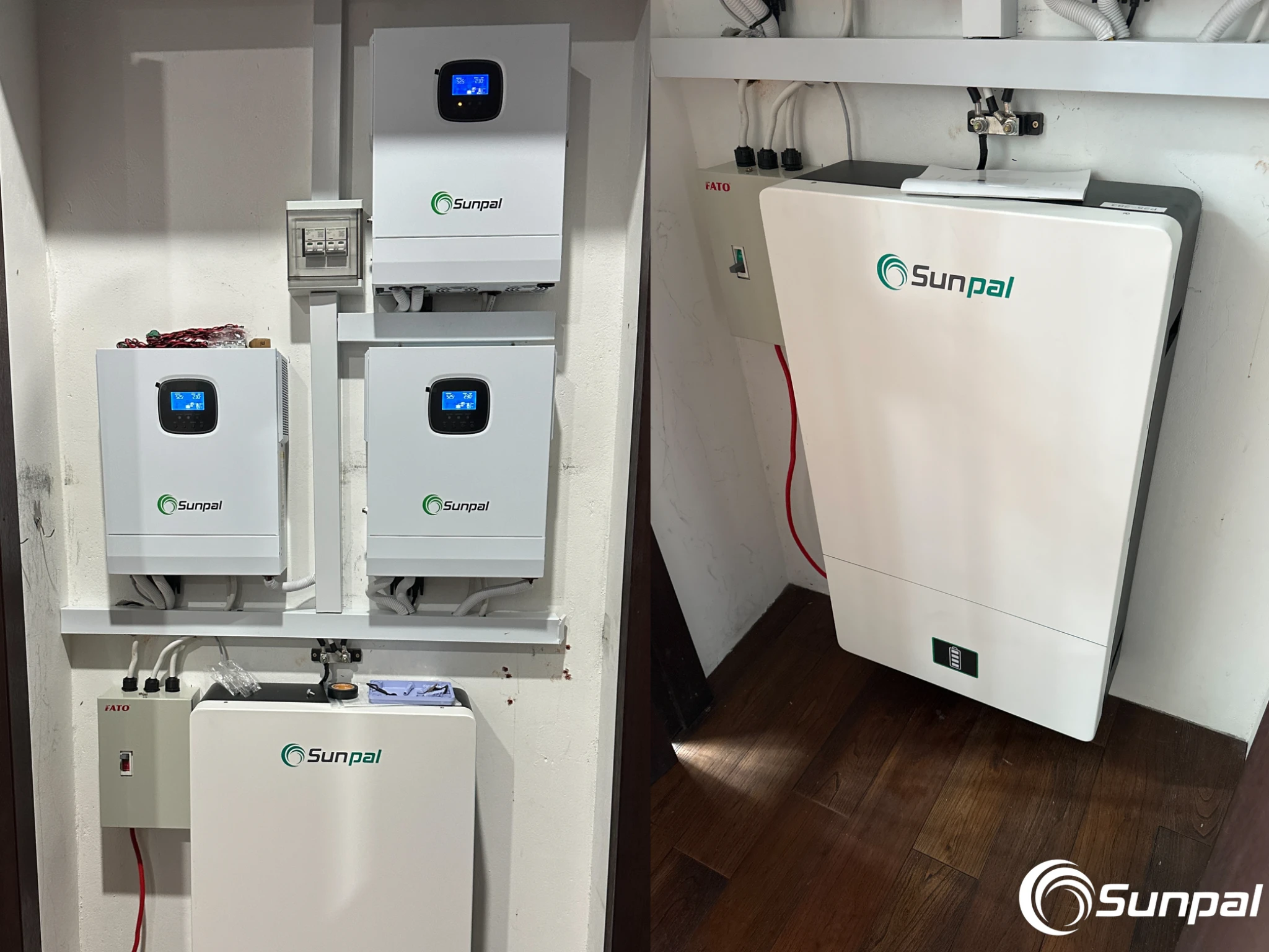 - 3 × Sunpal HSI 5500P Hybrid Inverters (≈ 16.5 kW AC)