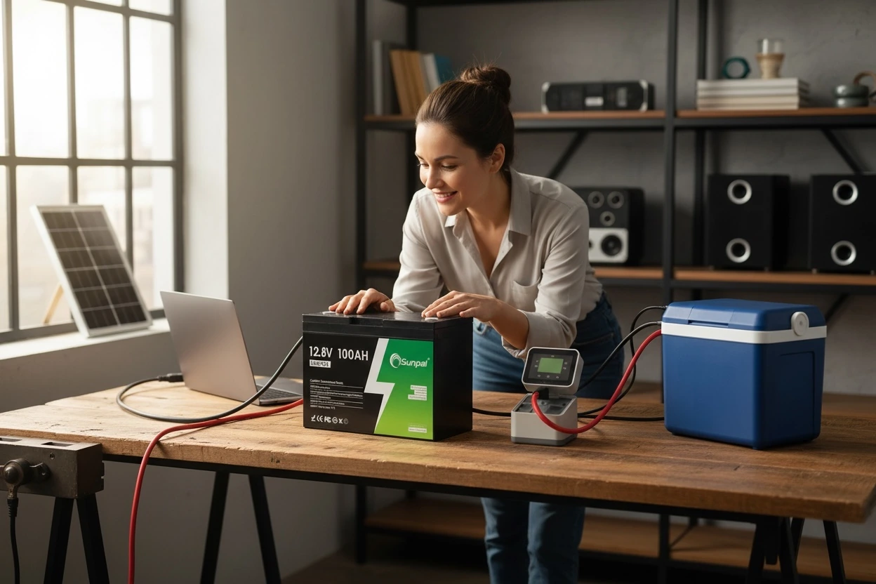 The Sunpal 12V 100Ah LiFePO4 Lithium Battery offers high-capacity deep-cycle performance with over 6000 cycles, Smart BMS protection, and fast-charging Grade A cells. Engineered for solar power systems, RVs, marine use, off-grid applications, and home energy storage, it delivers long service life, stable output, and maintenance-free reliability.