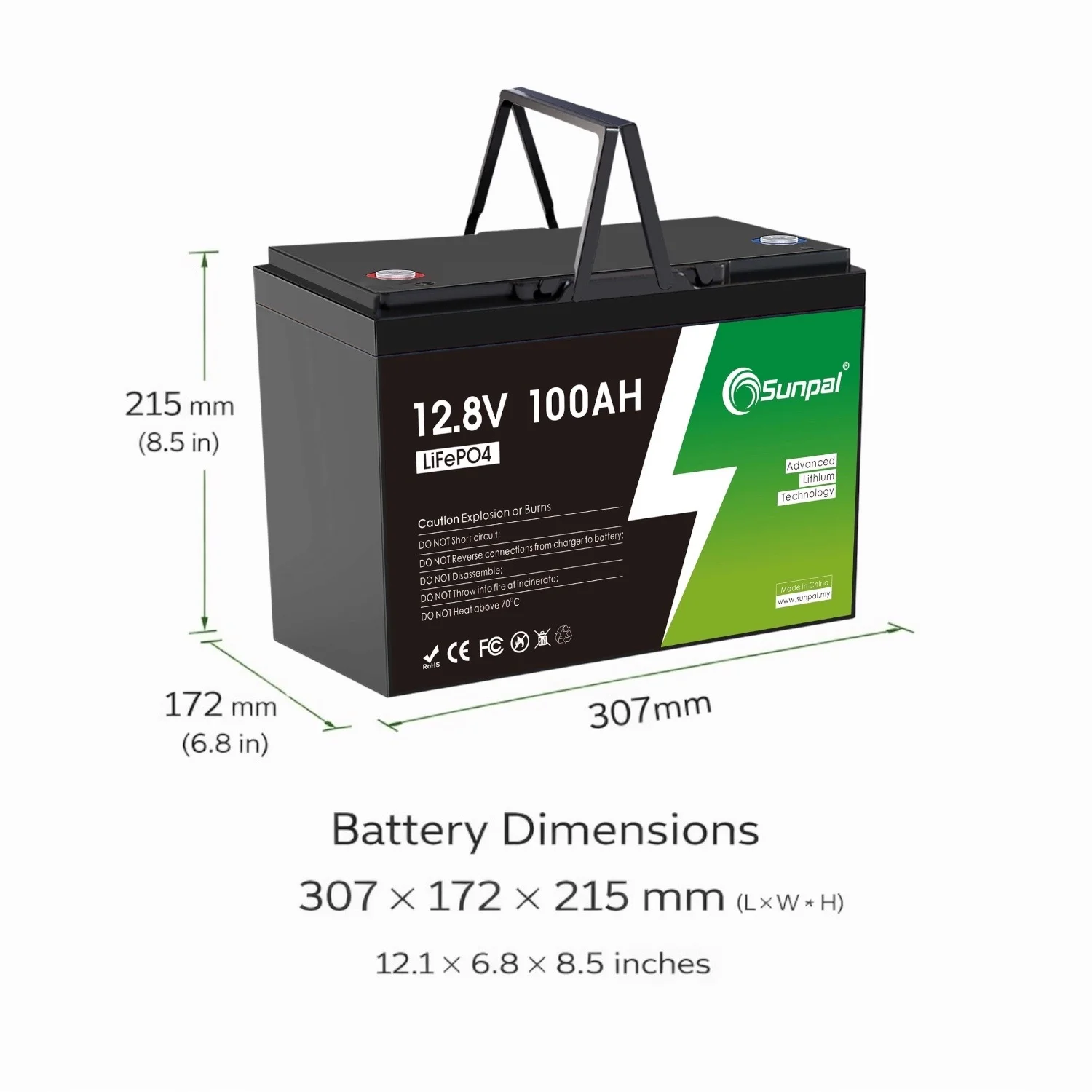 Sunpal 12.8V 100Ah LiFePO4 Deep Cycle Battery