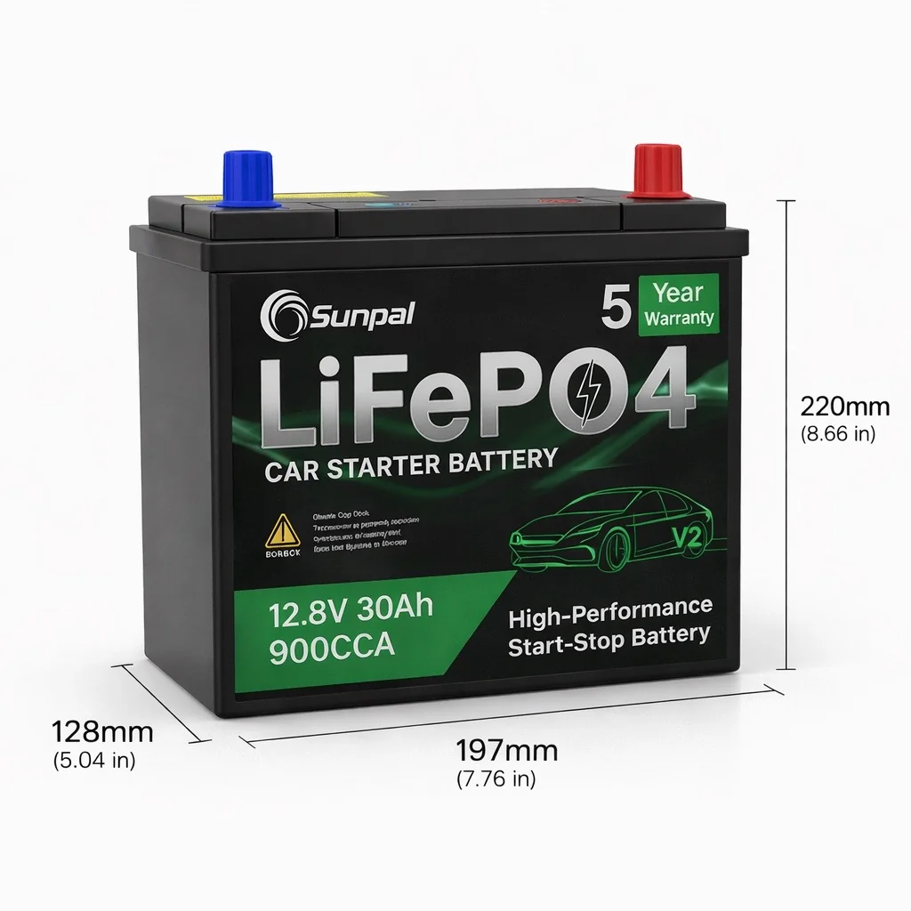 Sunpal 12V 30Ah LiFePO4 Lithium Car Battery – 900CCA High Performance Starter Battery