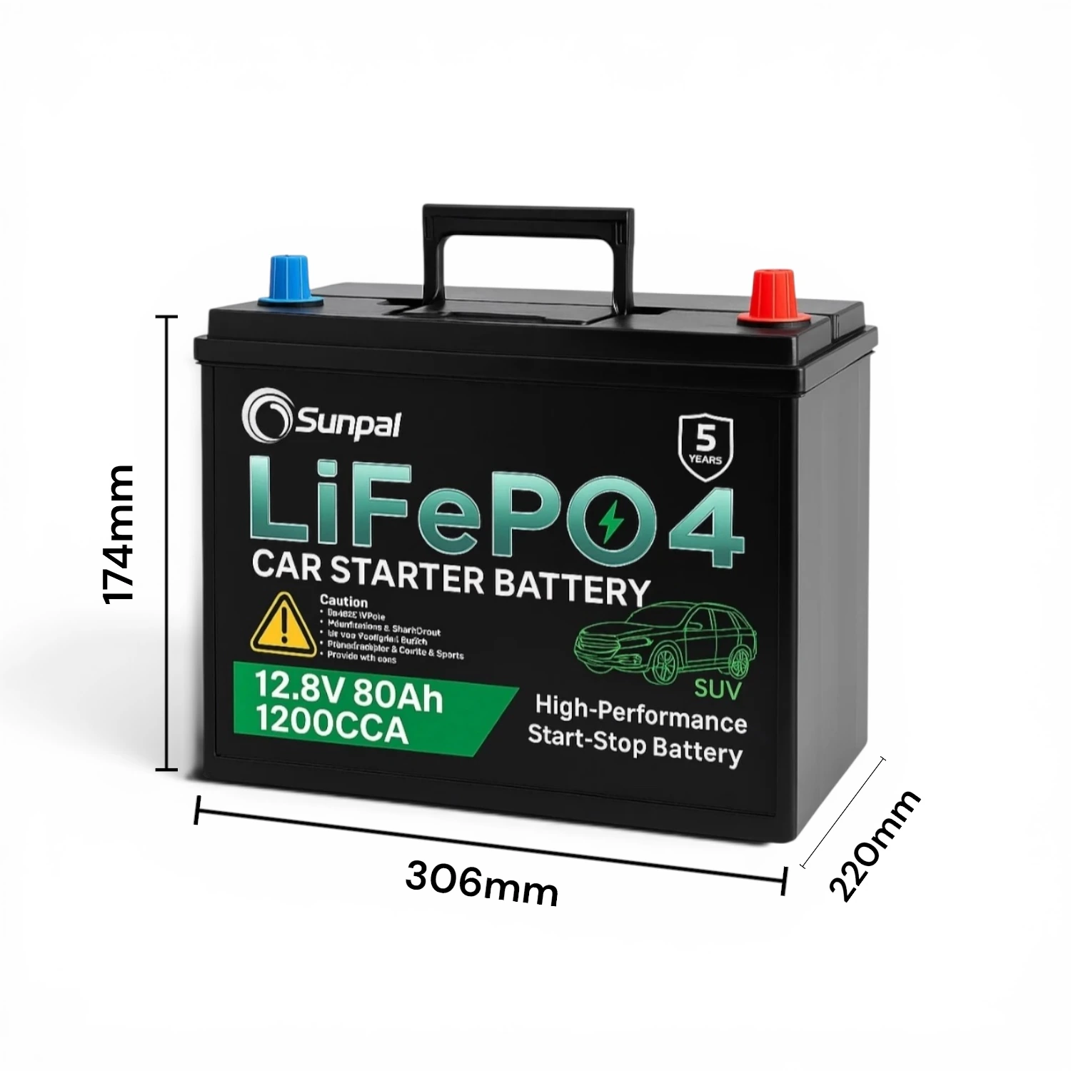 Sunpal 12V 80Ah LiFePO4 Lithium Car Battery – 1200CCA High Performance Starter Battery